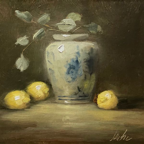 Inspired by the old masters in chiaroscuro fashion, Kristie studies the fall of light as it passes over various collected objects that she arranges on her still life stage. Her compositions are made up of her beloved collection of antiques and curiosities curated over the past 35 years spent in the interior design industry. She also loves using pieces inherited from her grandmothers who had a profound impact on her artistic development. Kristie creates her work with oil on linen panels.